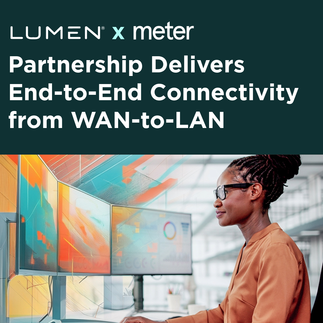 The Lumen x Meter solution is an example of Lumen’s Connected Ecosystem, a major driver of commercial expansion for smarter, faster solutions across cloud, data center and infrastructure services that seamlessly interconnects customers, partners and platforms.